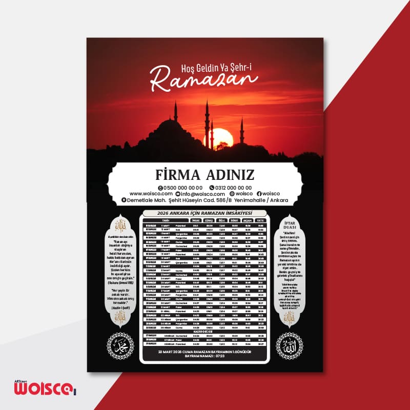 İmsakiye baskı (Ramazan İmsakiye) , Ramazan ayında en çok tercih edilen ve geniş kitlelere ulaşan baskı ürünlerinden biridir. Camilerde, eczanelerde, marketlerde, işletmelerde ve bireysel dağıtımlarda kullanılan imsakiye baskıları; hem bilgilendirici hem de tanıtım açısından büyük avantaj sağlar.
