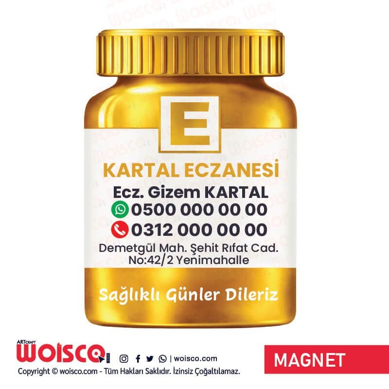 Şişe Eczane Magnet Baskı (Altın) (Md:4033)